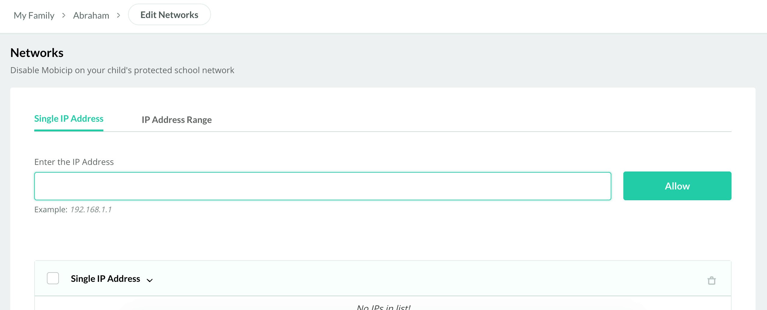 The idea behind this is to protect children’s browsing time from unfamiliar and potentially hostile networks. Allowing IP addresses or their range will keep children browsing in the same field as the other tools allow them to.