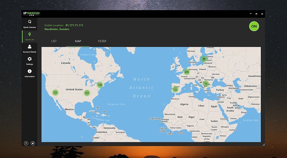 The size of a VPN’s server network can have a direct impact on your internet experience. More locations mean more options when you need to bypass geo-restrictions on videos and websites. It also means better server availability to help you avoid crowded nodes and laggy connections. IPVanish has an incredibly large and diverse network of over 1,900 servers in 75 locales with a shared 40,000 IP addresses between them. It’s one of the largest in the business, and IPVanish isn’t afraid to flaunt it.