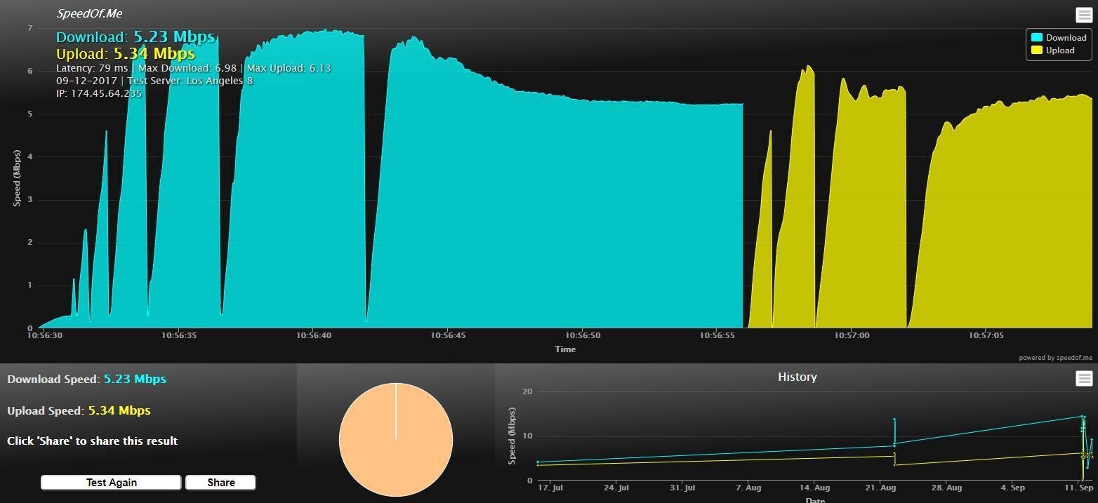 Local ISP – 6.61 mb/s (low) – 6.86 mb/s (high) – 6.77 mb/s average