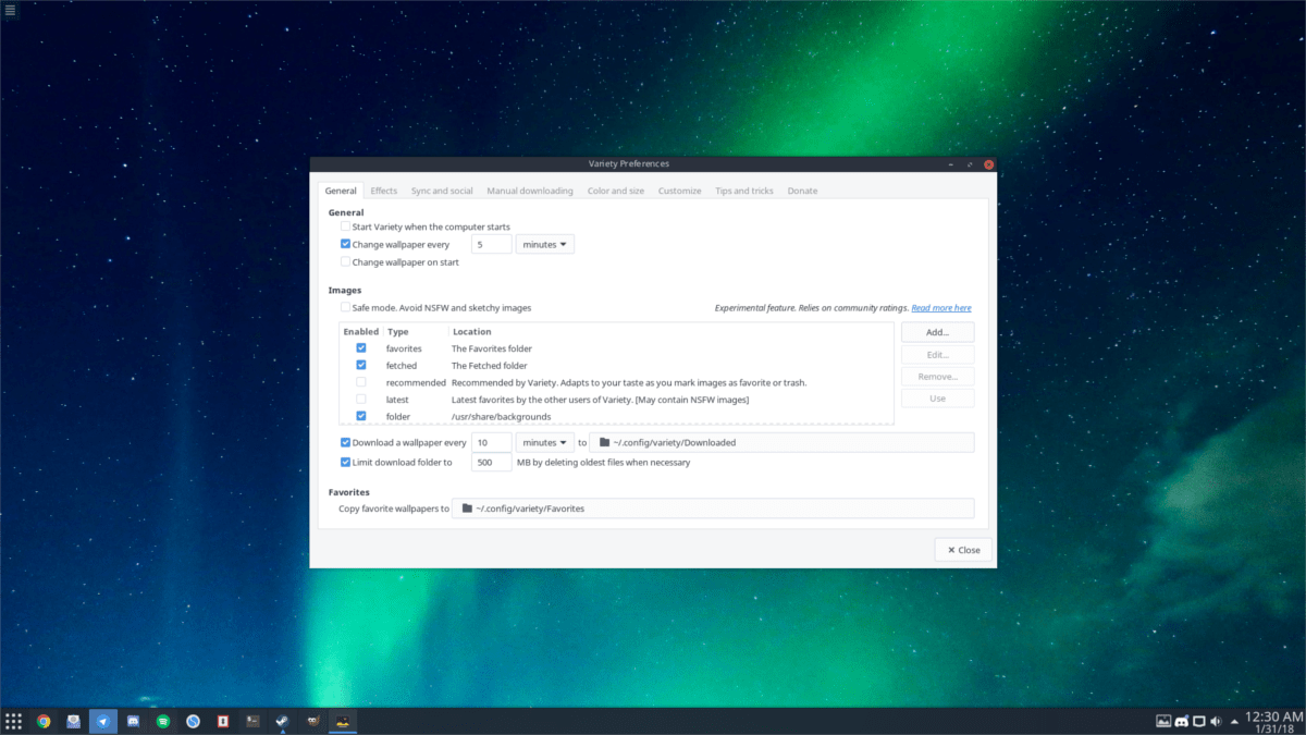 By default, Variety will change your wallpaper every 5 minutes. That’s a little insane. Click the slider next to “5 mins”, and select “Days” rather than minutes. Then input 1. From here, the app will change your wallpaper every day. If you don’t want to set it so that wallpaper changes every day, Variety supports changing based on minutes, hours and days, weeks.