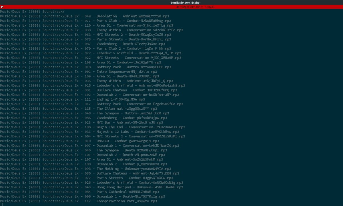 Step 2: After placing all of the music files into the “Music” folder, close your music player (if it is open) and go to the terminal you opened previously. Then, run the ls command on the “Music” directory to confirm that the terminal sees your music files.