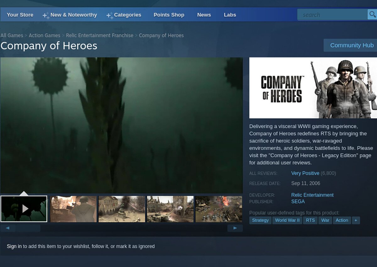 Look through the search results and click on “Company of Heroes” to access the game’s store page.