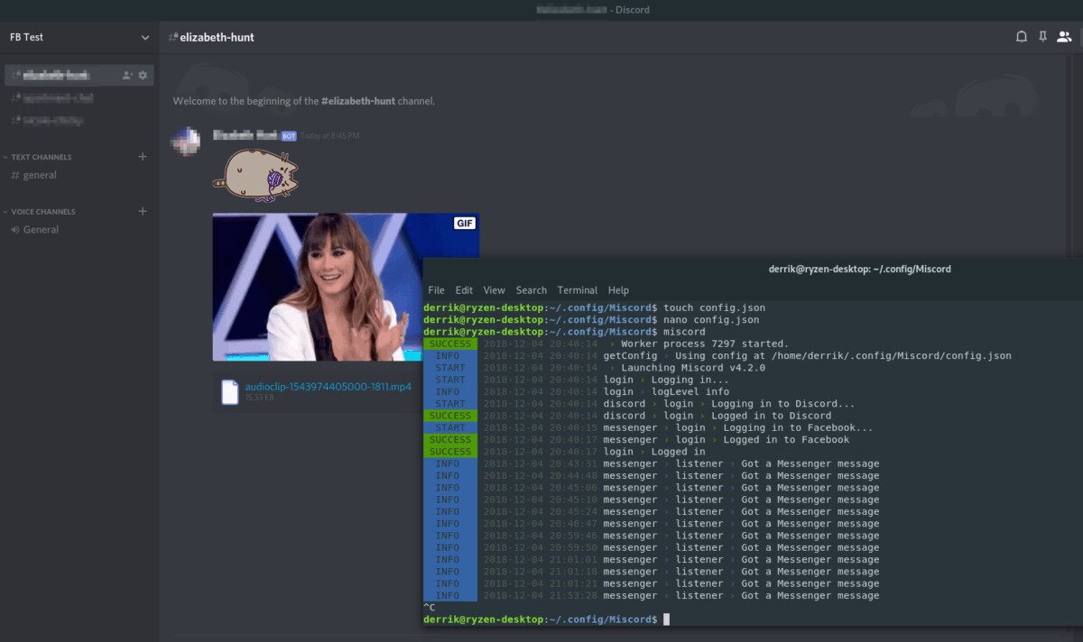 To use the Miscord FB bridge, launch a terminal and run the miscord command, then open up Discord on Linux. As it runs, messages from individual users and groups will start to show up in different channels created by the bot.