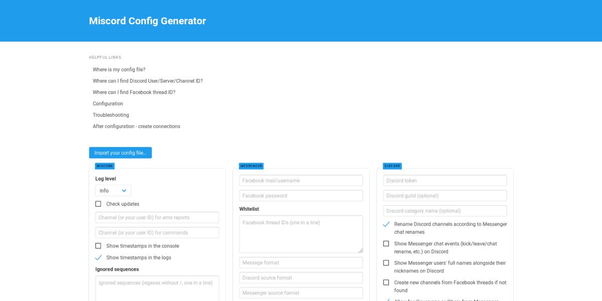 Step 3: In /home/username/.config/Miscord/, import the “config.json” file to the website.