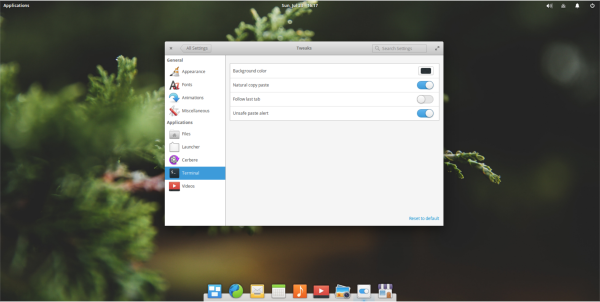In the Tweaks section, look for Terminal, and select it. Inside the Terminal section of tweaks, users can customize everything about the terminal from the background color, to things like “natural copy paste”, and “unsafe paste alert”.