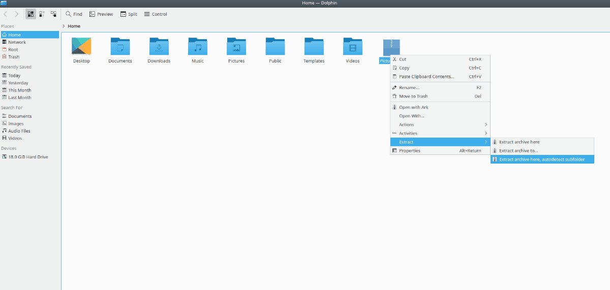In the right-click menu, select “Extract,” followed by “extract here, autodetect sub-folder.” Don’t want to extract from Dolphin? Double-click on the RAR archive to open it up in KDE’s ARK tool.