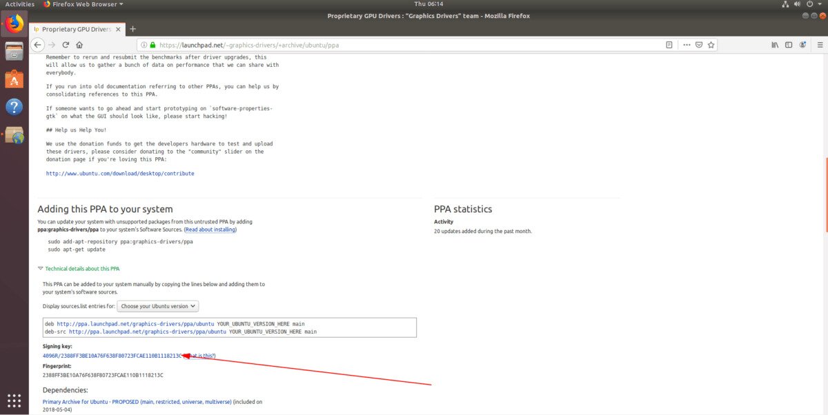 Keep the “Software & Updates” area open, and open up a new browser tab. Then, head over to the page where you got the software PPA from. On this page, look for the GPG signing key and save it to your computer.