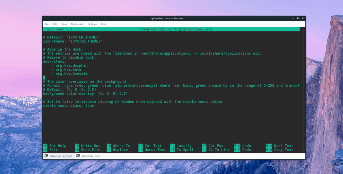 Looking to add custom items to the qOverview dock? Open the config file in Nano.