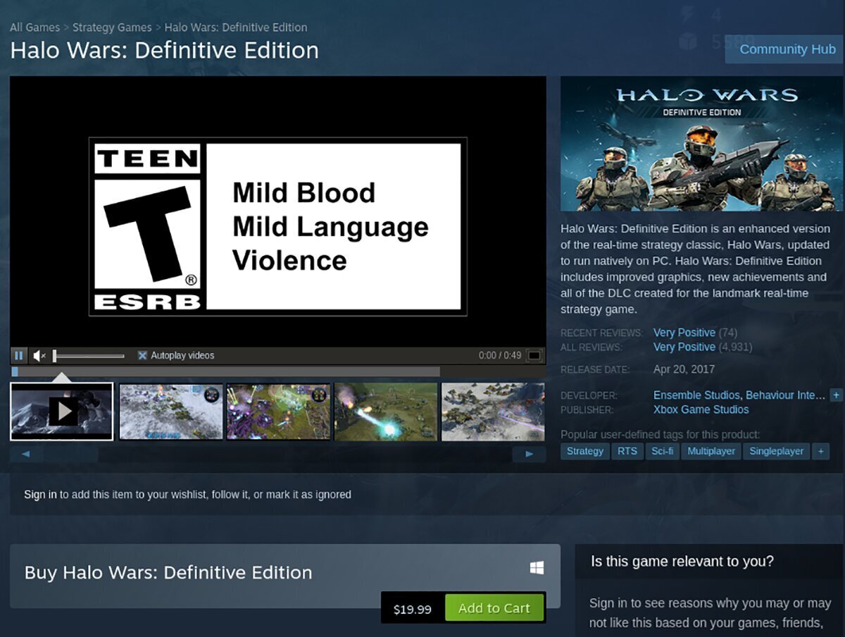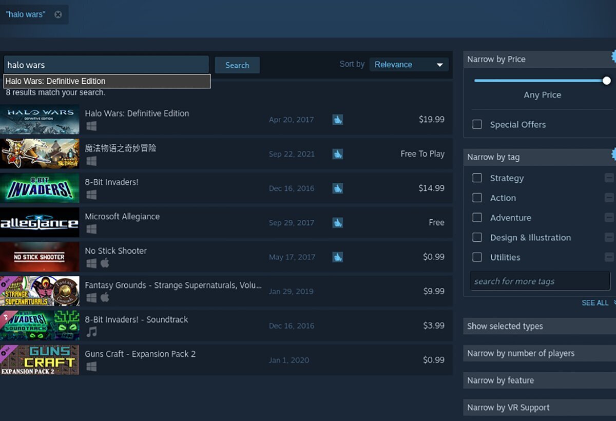 Look through the search results and select “Halo Wars: Definitive Edition” with the mouse. When you choose the game, it will load up the Halo Wars: Definitive Edition Steam store page.