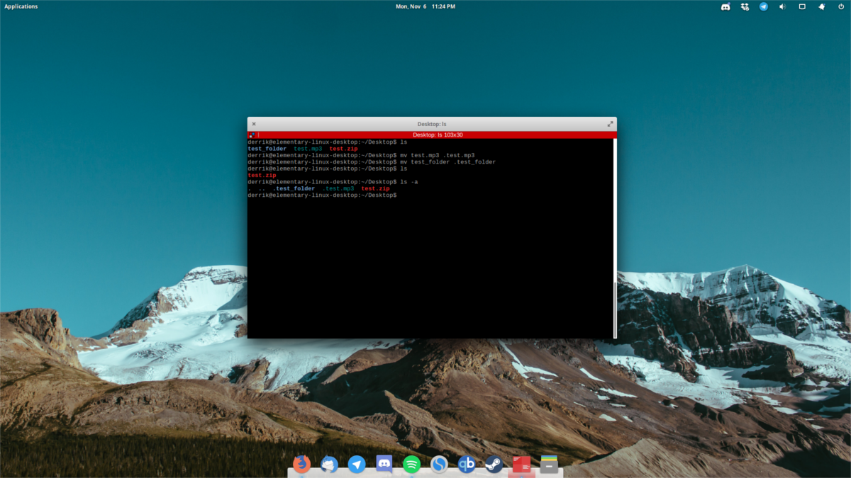 Not only can the MV command move something from one place to another, but if the user runs MV without telling it to move to another location, it will rename a file. The important part here, is to put a “.” in front of the file. Placing a period in front of any file name will instantly give the file hidden status. The same goes for existing folders.