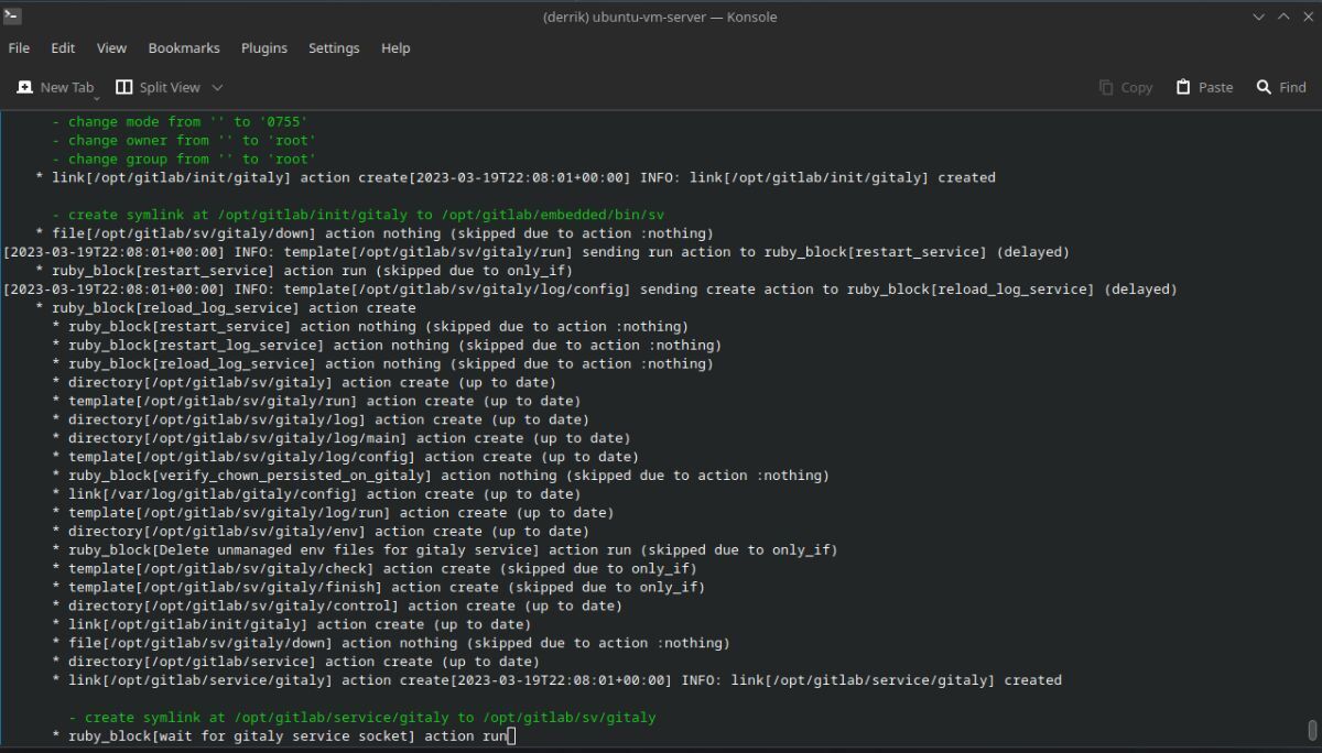 After exiting the Nano text editor, you’ll need to restart the GitLab service so that the changes you’ve made will be applied. Restarting the GitLab service is done with the gitlab-ctl command.