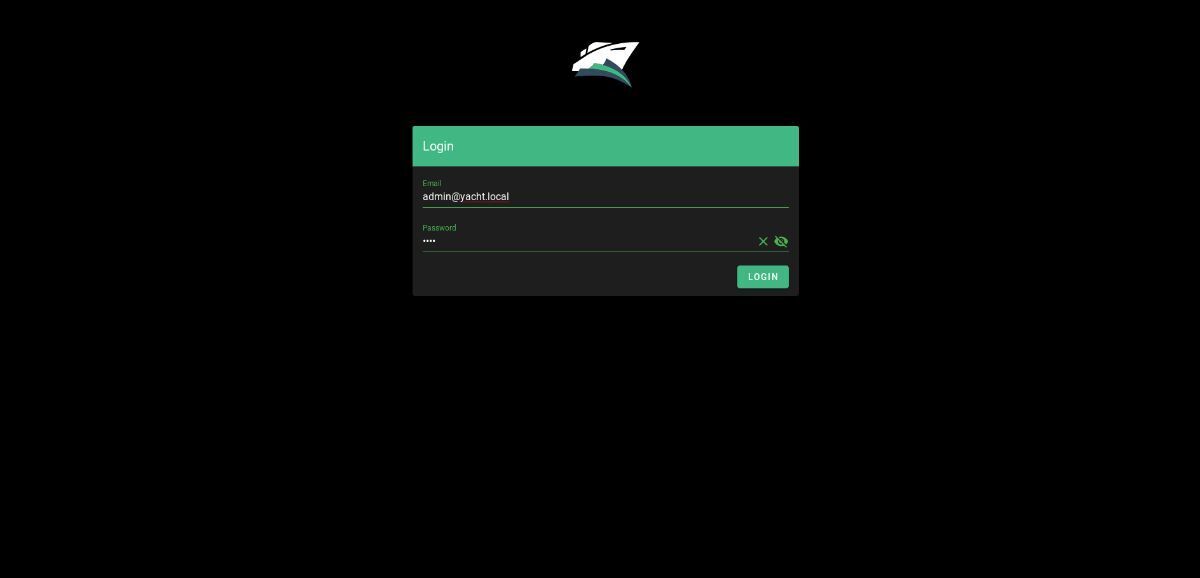 You’ll need to use the default password and username to log into Yacht. Then, access Yacht via the URL below, enter admin@yacht.local as the user and pass as the password.