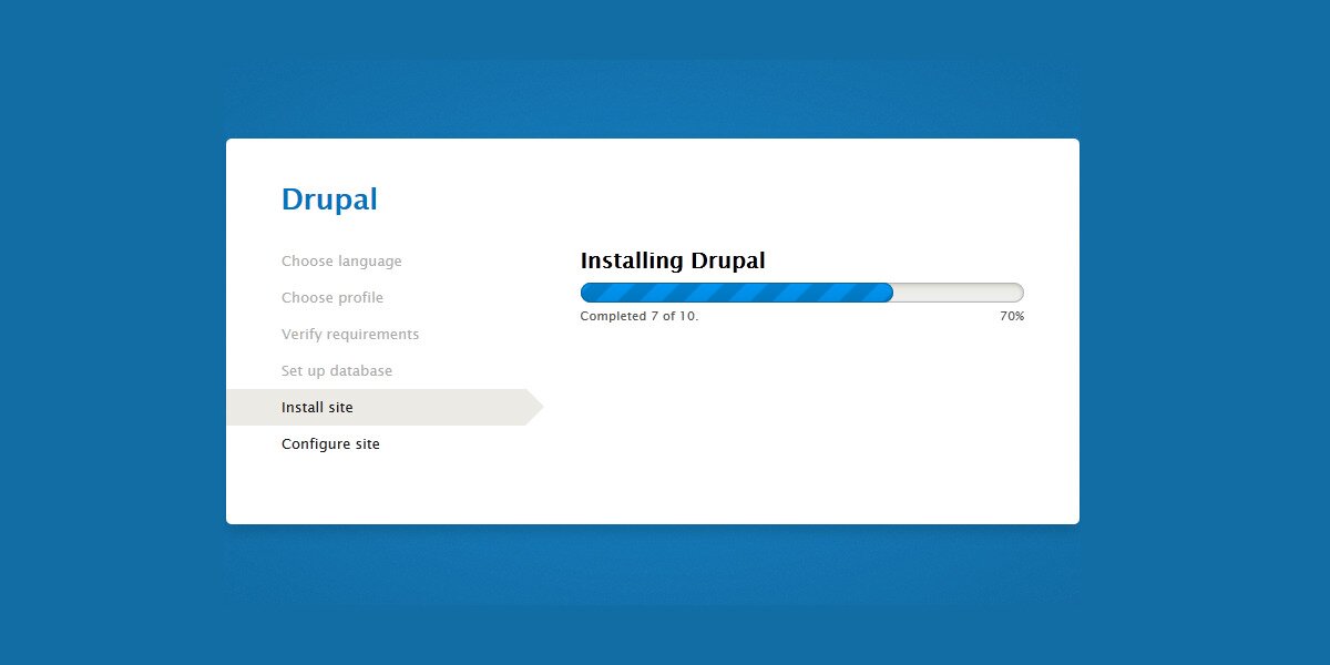Drupal is all set up, and ready to use. The next step is to go through and run the Drupal Installation script. The software will walk you through creating an account, and get everything running correctly.