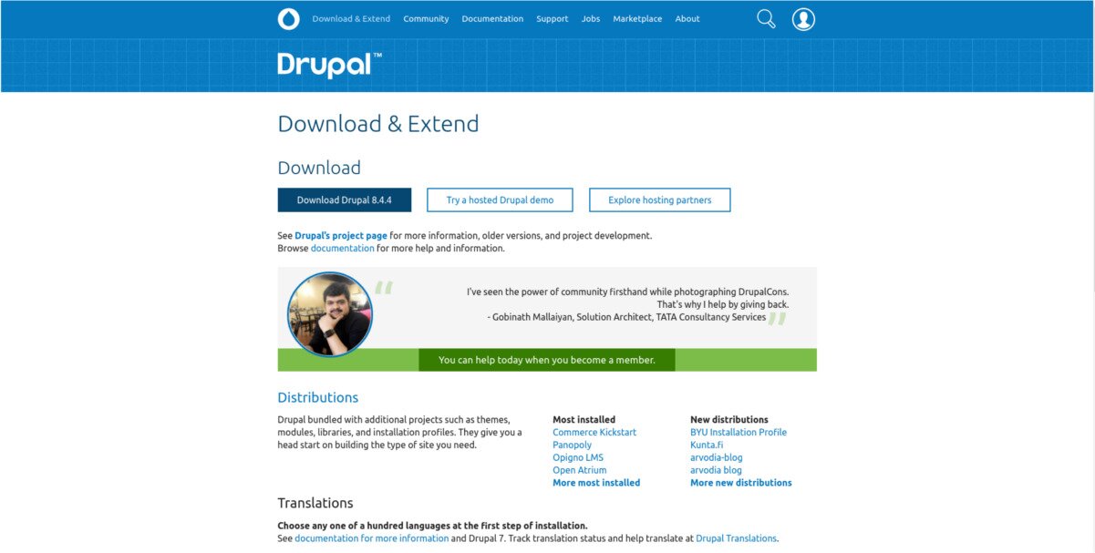 The dependencies are satisfied, and all the necessary web applications are installed and working properly. The next step is to download the latest version of Drupal to the server. Go to the drupal.org website, and grab the tar.gz version. To make downloading directly to the server easier, right-click on the download button, click “copy link location”, and go to the terminal.