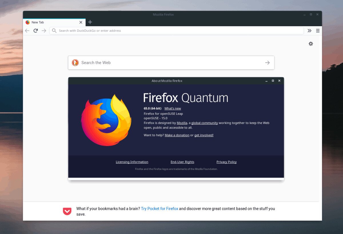 The Firefox ESR release on OpenSUSE Leap is pretty modern; it’s not ancient. However, it’s considerably slower and lacking new features that most users come to expect. Luckily, you can install the Firefox Release version on OpenSUSE LEAP.