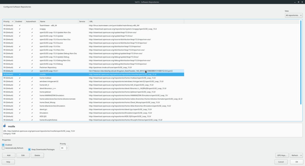 zypper addrepo https://widehat.opensuse.org/opensuse/repositories/mozilla/openSUSE_Leap_15.0/ mozilla
