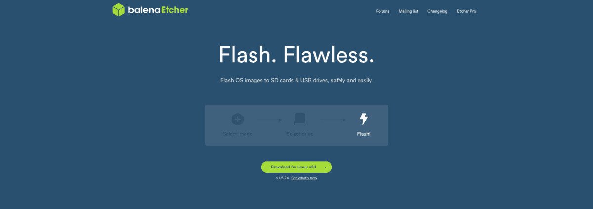 To start the creation of your KaOS live USB, head over to Etcher.io, and download the app for the OS you are using to create the KaOS live USB. Then, follow the step-by-step instructions outlined below.
