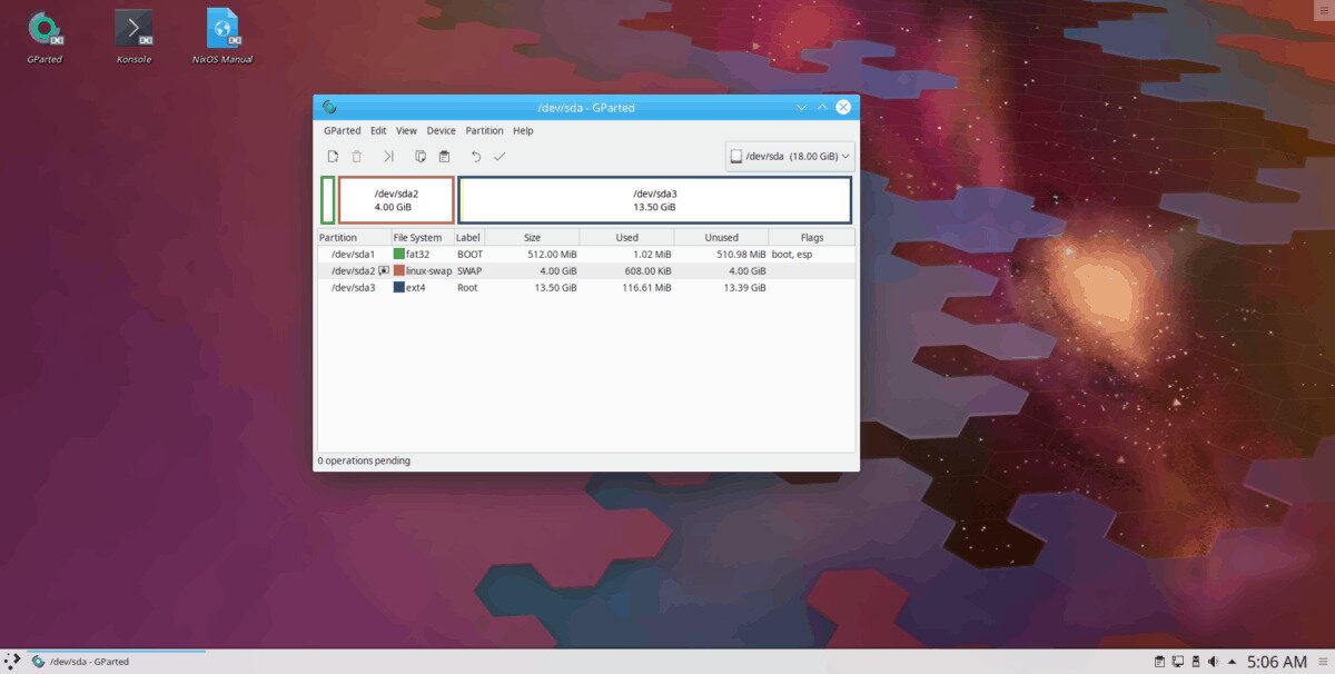 You’ll then be presented with a KDE Plasma desktop environment. From here, locate the Gparted icon and double-click on it to start the partitioner.