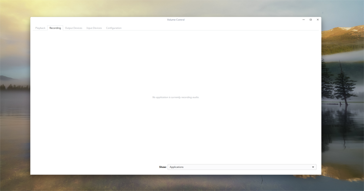 In the recording tab, things are very much the same. Instead of showing playback, it shows all programs currently recording audio. Use the volume sliders to manage how loud the input volume is. Click the audio device label to switch what device Pulse uses to record with.