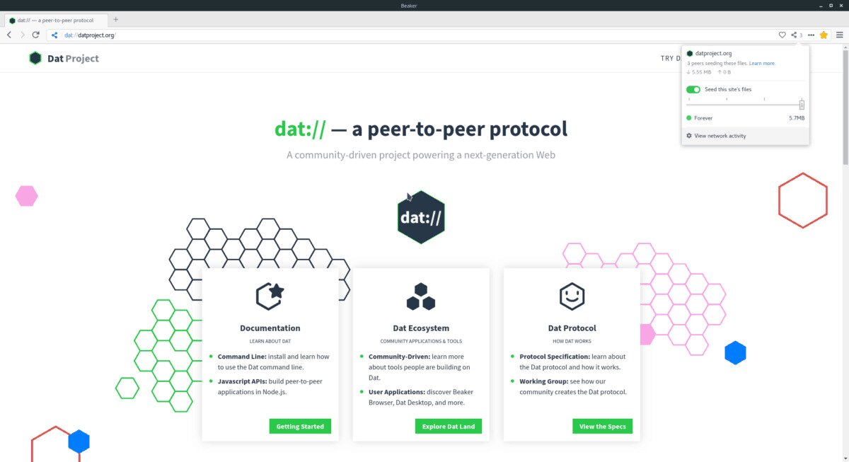 The Beaker browser is an “experimental” next-gen web browser for Mac, Linux, and Windows that, when installed, allows users to host, download and distribute web pages and files. All of the data in Beaker is distributed with the Dat P2P protocol. This protocol is still relatively new but promises to allow anyone to create and share data online without the need to worry about privacy or cost.
