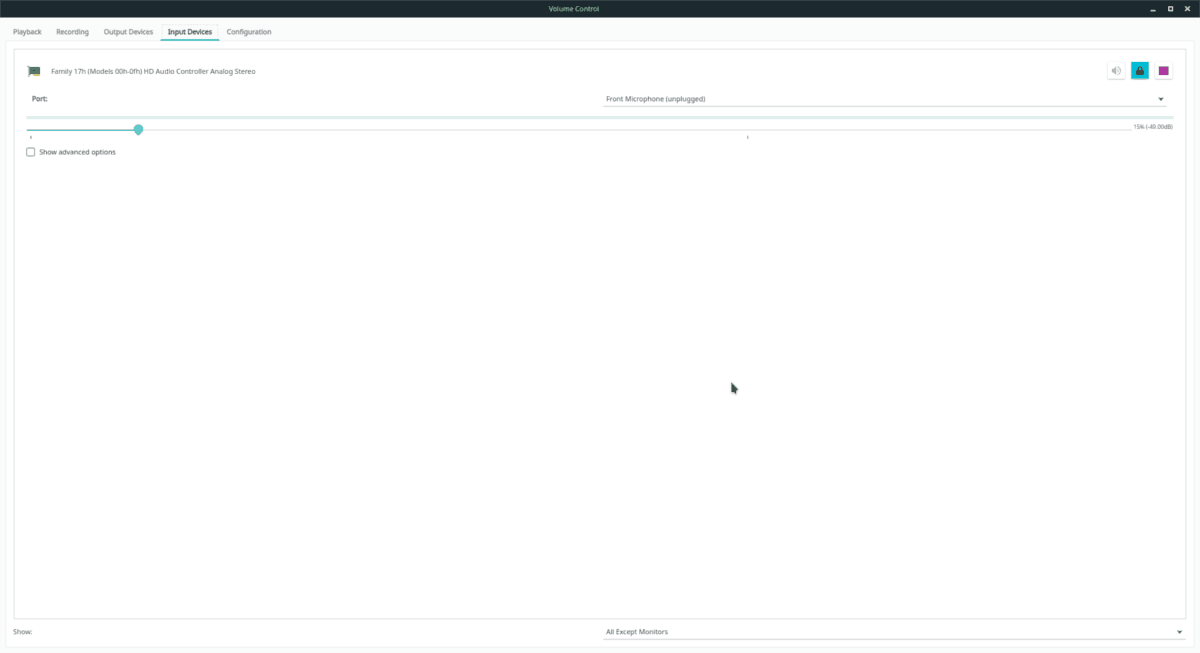 Pavucontrol lets users manipulate an input device, as well as outputs. To find your audio input devices in the app, click the “Input devices” tab.