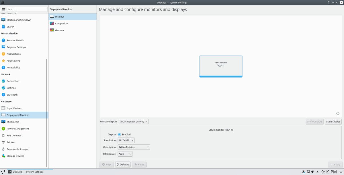 To change the resolution of your monitor on KDE Plasma 5, look to the “Resolution” menu, and click on the drop-down menu to choose a new resolution size. To swap the layout of the display, find the “Orientation” menu. For the refresh rate, click on the menu next to “Refresh rate.”