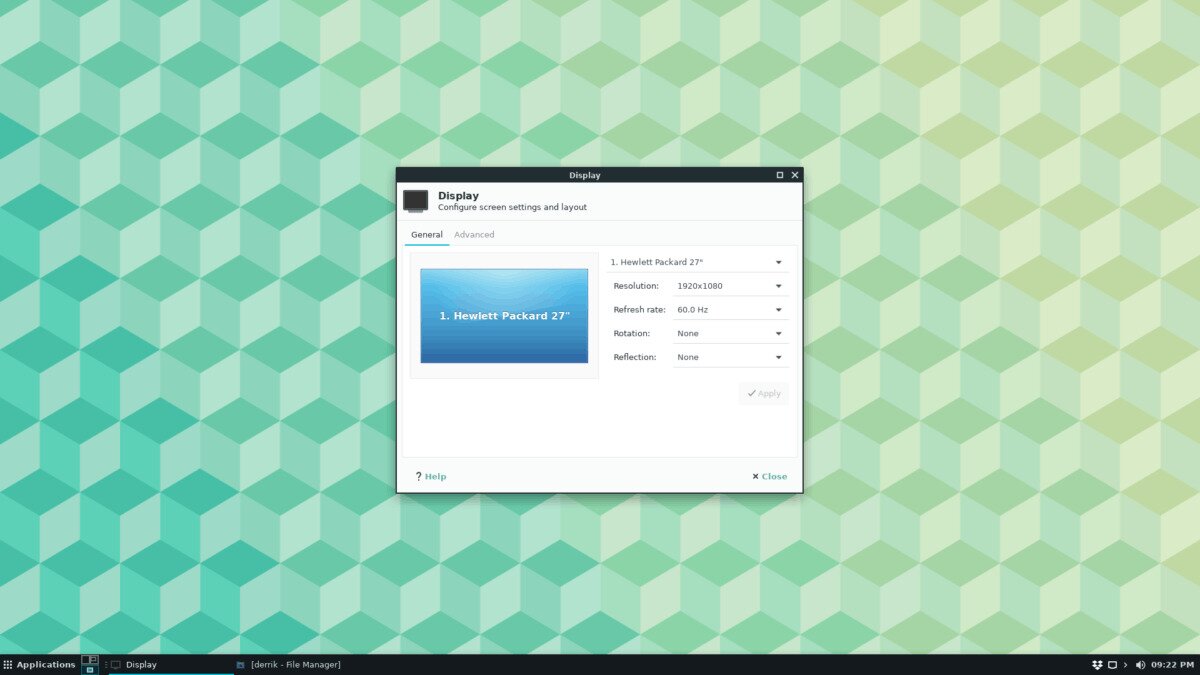 Upon clicking on Display, a monitor configuration window will appear, with various settings, such as “Resolution,” “Refresh rate,” “Rotation,” and “Reflection.”