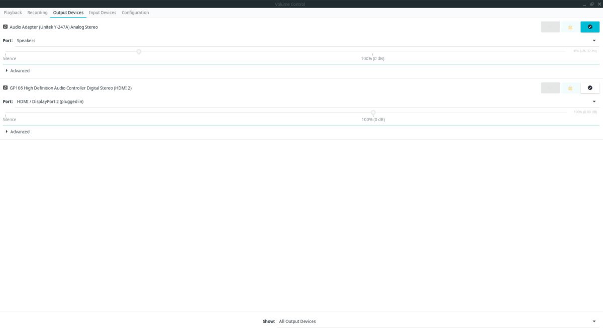 Step 1: Look inside of Pavucontrol for the “Output Devices” tab, and click on it with the mouse.
