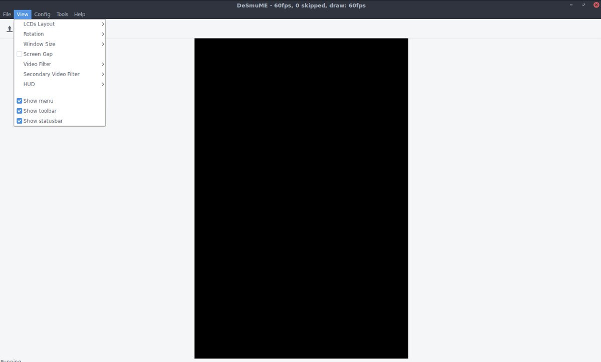 There isn’t a dedicated graphical settings window for the DesmuME emulator. Instead, users looking to modify things like resolution, and will need to select the “view’ menu. In this area, options like “video filter”, “LCD layout”, and “resolution” are configurable. For other graphical options, click the “config” menu. In config, users can change the framerate of ROM playback, etc.
