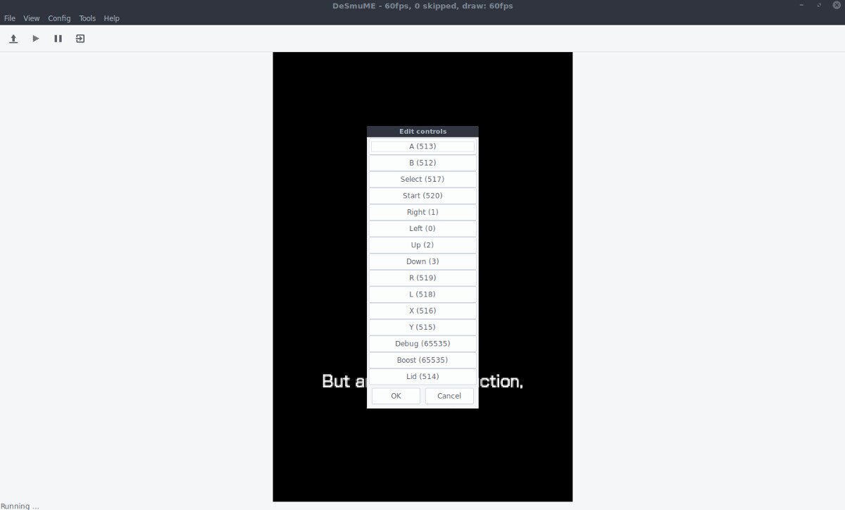 Note: to re-bind controls to the controller, go through and re-select each of the controls. Each time a control button is clicked DesmuME will ask the user to re-assign the control.