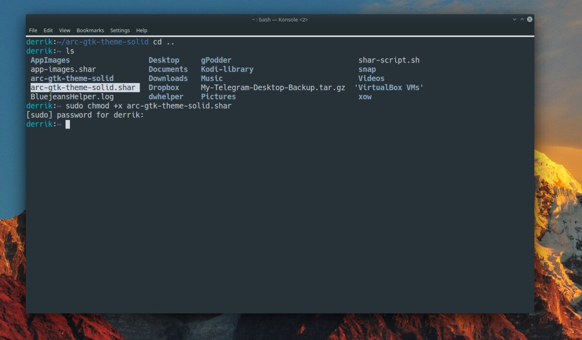 Step 5: After creating your new self-extracting Shar archive, the process isn’t complete. Before being able to run it to extract the contents inside, the permissions of the file must be updated.