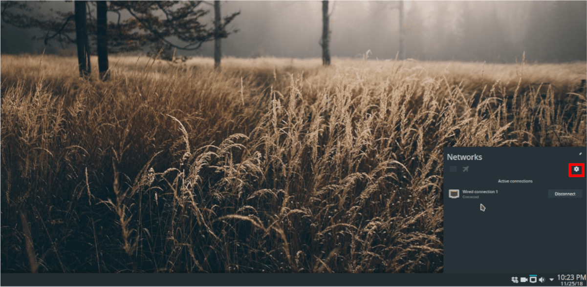 After clicking on the networking icon, you will see a gear icon. Select it to access connection properties.