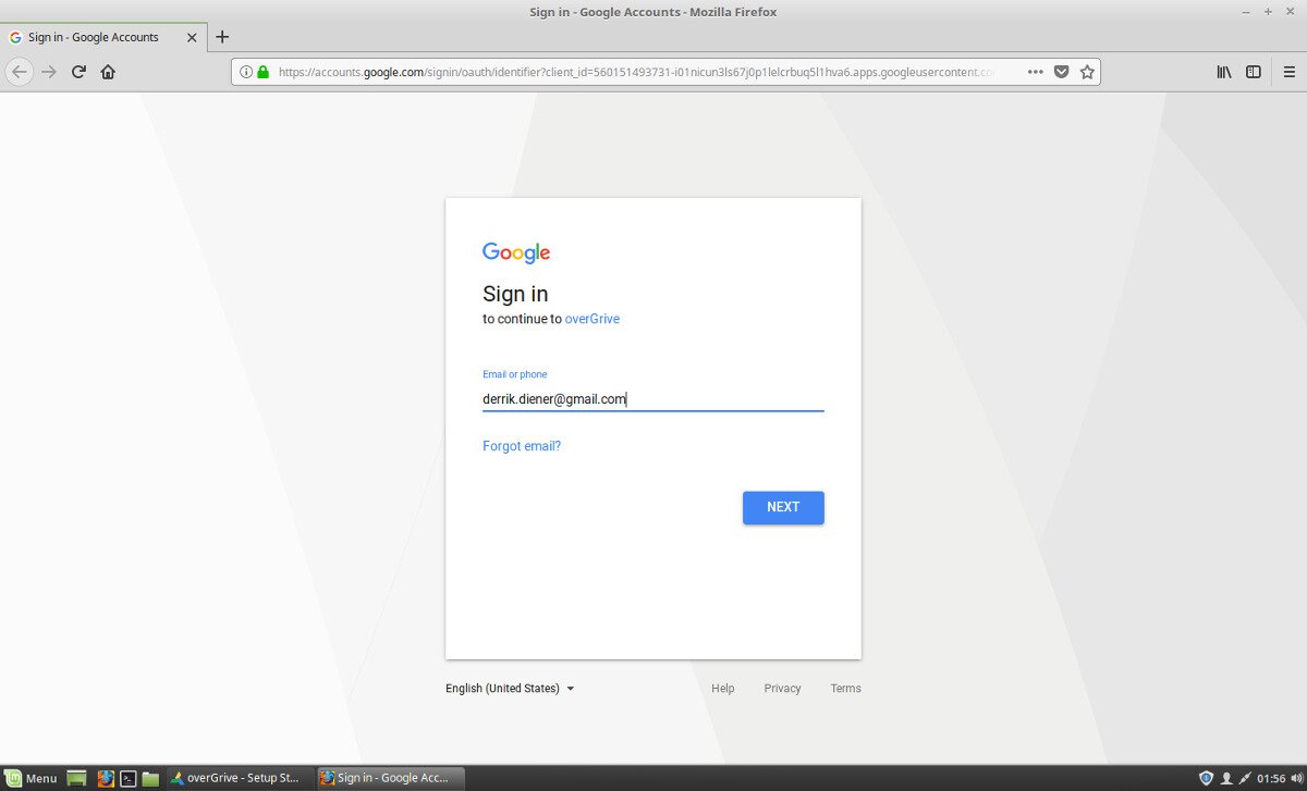 Launching OverGrive brings up a wizard that will walk the user through the initial setup for syncing. The first thing to do is to connect your Google Account. Select “connect account”. This will automatically open the Google Oath sign in tool. Enter your Google account information, and log in like normal. With a successful login, you’ll be asked to “copy this code” and “paste it into your application”.