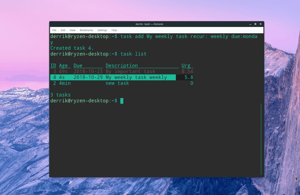 Need to create a task that repeats itself in the Taskwarrior application? Use the recur command. Here are some examples.