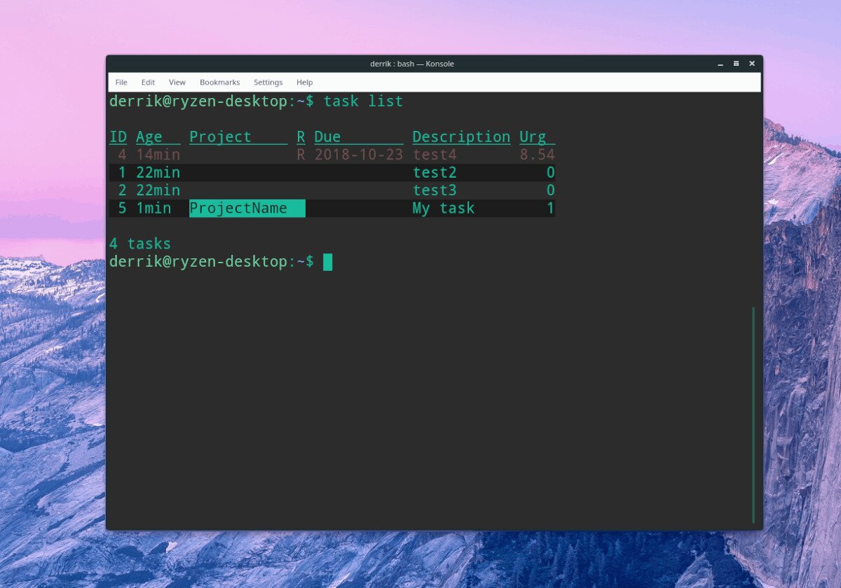 List most to-do list applications, Taskwarrior lets users add tasks to separate projects, for greater organization. To add an item to your list, create a new task with the project command.