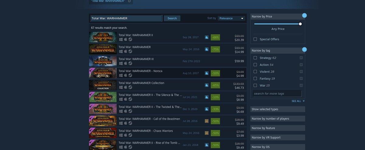 Step 2: When you’ve found “Total War: WARHAMMER II” in the Steam search results, click on it with the mouse. Selecting the game in the search results will load the Total War: WARHAMMER II page in the Steam store.