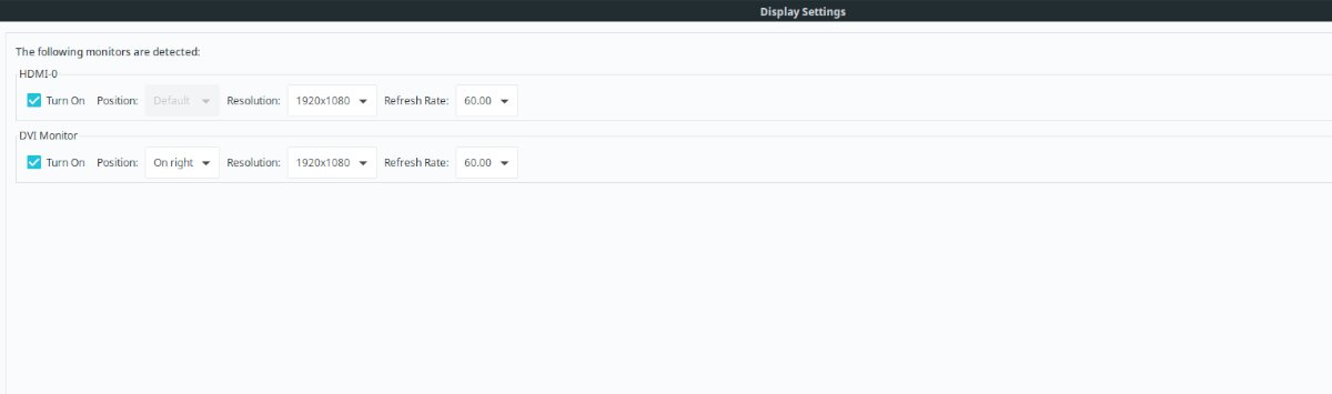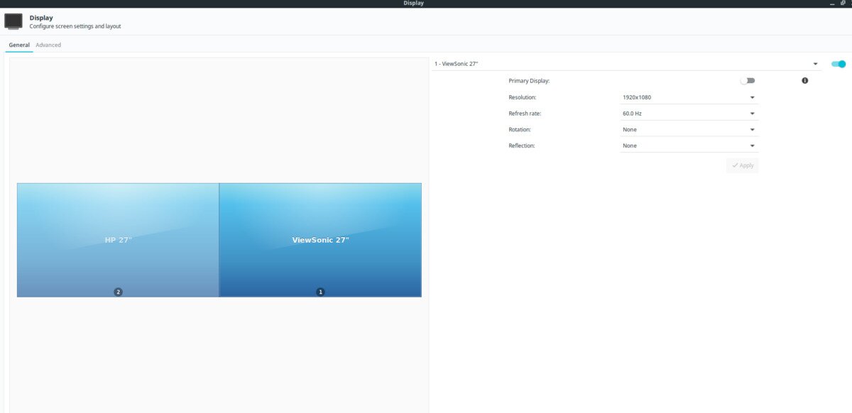 Once you select the “Display” program, the XFCE Display app will appear. In this app, you will see a layout of your monitor(s), as well as information on refresh rate, resolution, rotation, etc.
