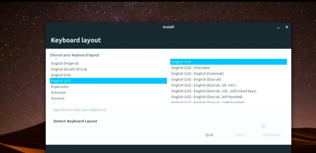 Step 2: After selecting your language on the welcome menu, Ubuntu Web Remix will ask you to choose your keyboard layout. To select your language, look through the list of available languages. Finally, click “Continue.”