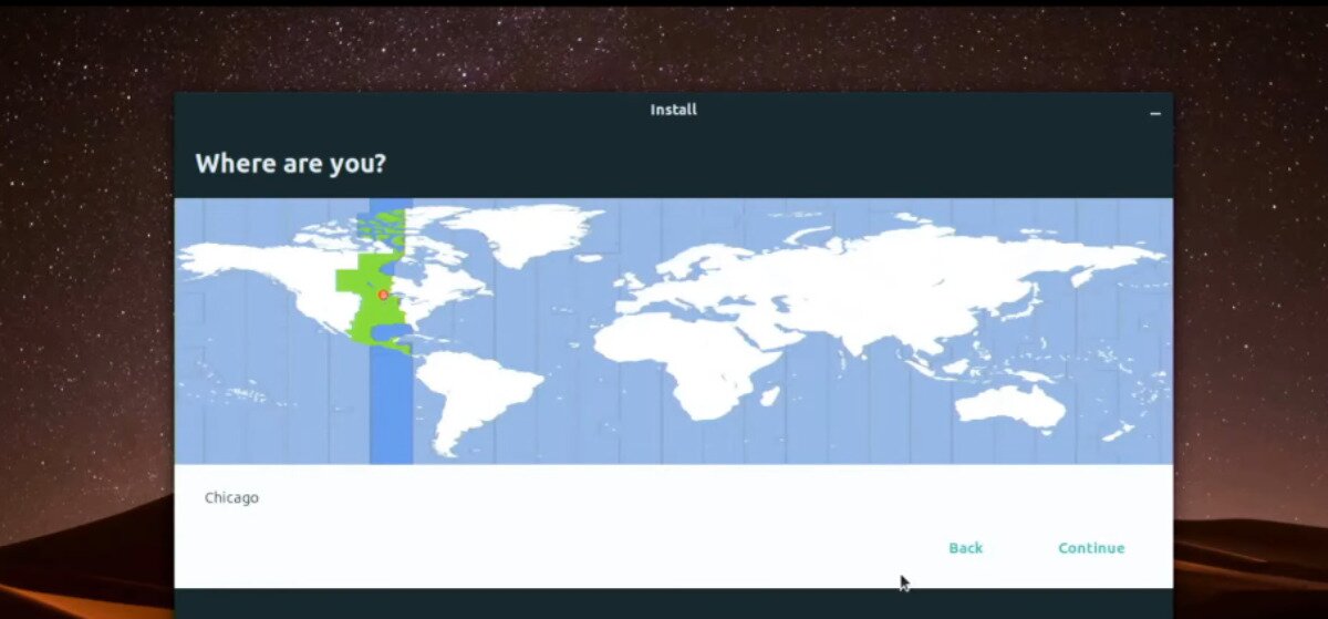 Step 6: You’ll now need to select your time zone for Ubuntu Web Remix. To set your time zone in the Ubuntu Web Remix installation tool, take your mouse and choose where you live on the global map.