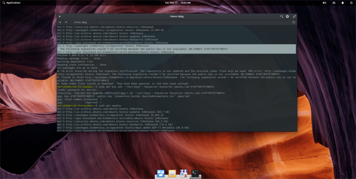 If the key was recovered, the update command should work without error, and you’ll be able to enjoy your new Elementary OS Juno PC!