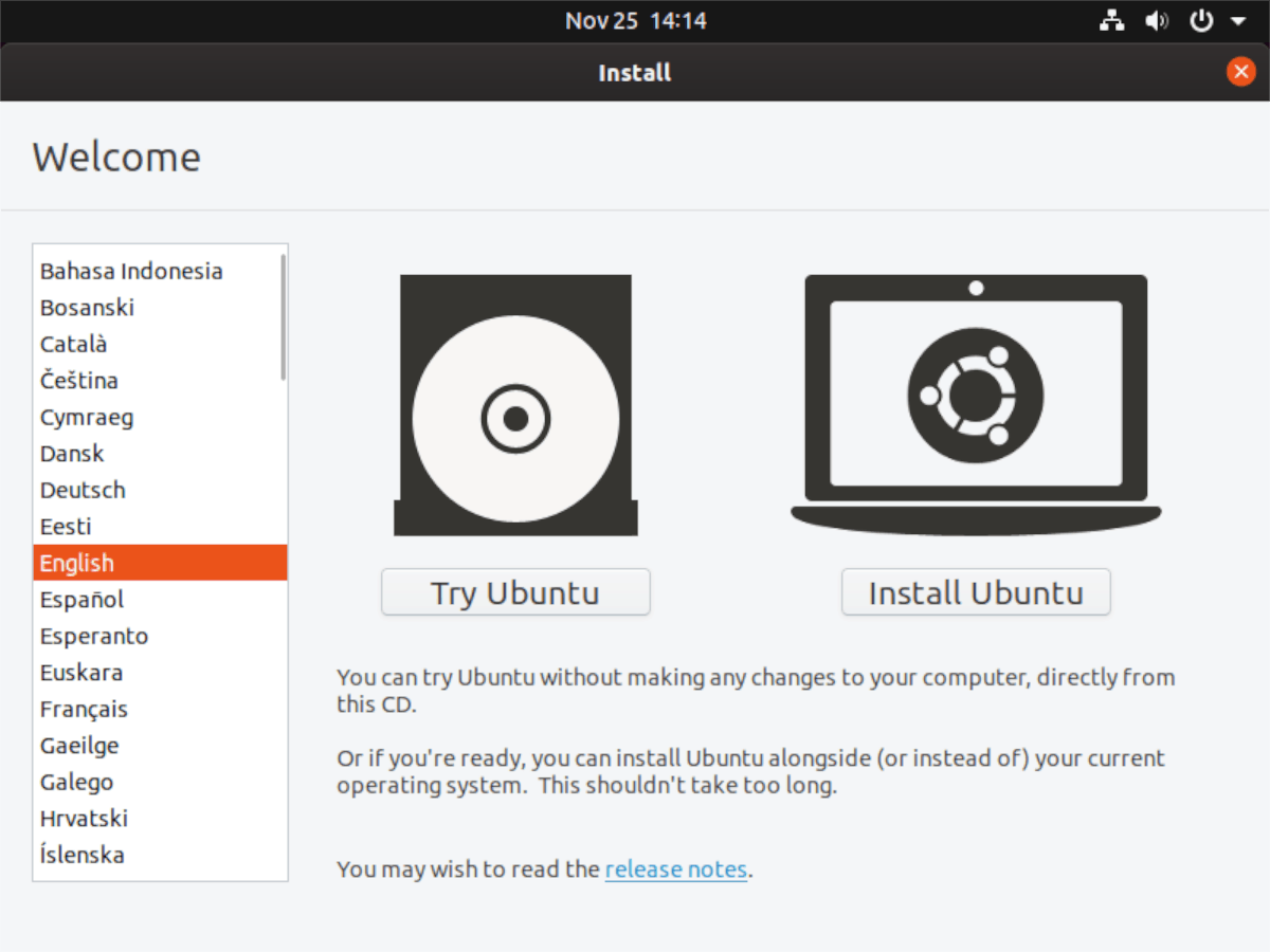Once your USB device successfully boots into Ubuntu, the installation can begin. To start, look at the “Welcome” screen in the Ubuntu live disk, locate the “Install Ubuntu” button, and click it with the mouse.