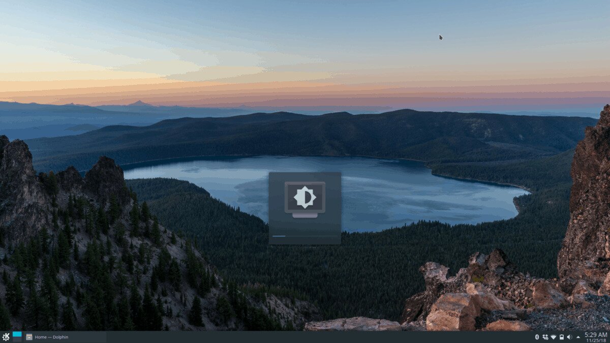 Brightness settings can be found by clicking on the “Battery” icon in the system tray.