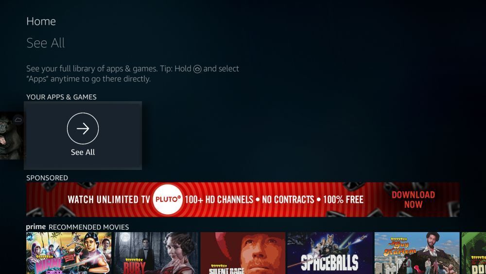 - Open the Amazon Appstore on your Fire TV by going to the home page and choosing Apps.