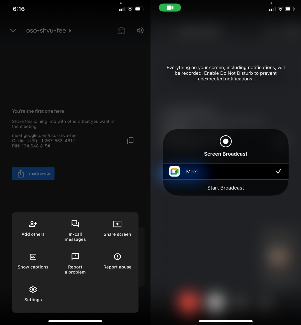 Google Meet screen share – mobile/iOS/Android