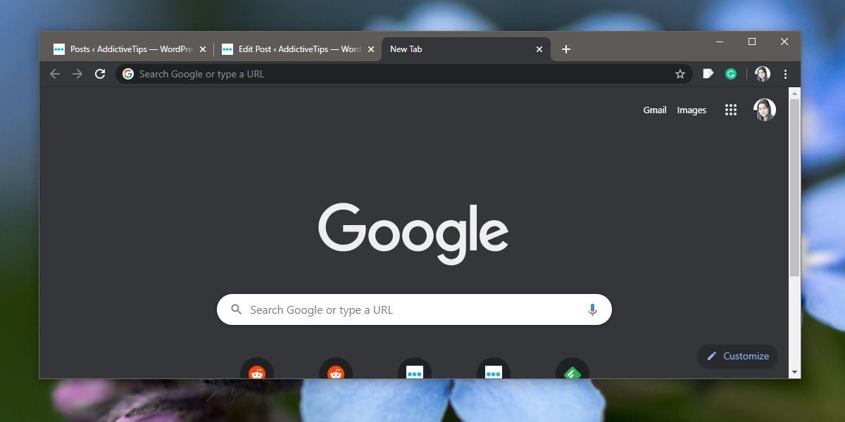 Chrome lets you customize the color of its UI. You can do so freely, and it’s a quick way to create a Chrome theme. The customization tool in Chrome allows you to pick one color, and then shades of it are used for the tabs’ bar. It looks good aesthetically, but often the active tab is hard to distinguish from the ones in the background tab.