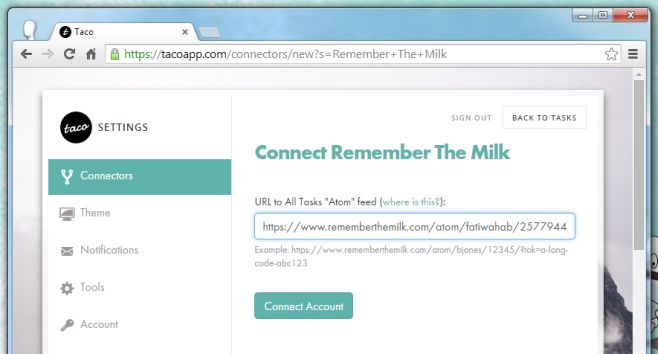 One ring to rule them all, one ring to find them, one ring to bring them all, and on the New Tab page, organize them in an orderly manner. Taco App is a little service that works through a Chrome extension and is indeed something like the One Ring only for task managing apps and services. It lets you connect over 30 to-do list and task management services and presents all upcoming tasks from them on the New Tab page. The tasks can be organized on the page into stuff that’s meant to be done later and stuff that is meant to be done next. Needless to say, the default New Tab page is replaced with a new one but it still links to your frequently visited sites (the speed dial) at the bottom of the page, you can print the list of tasks, and email them. Supported services include Asana, Jira, Basecamp, Github, Evernote, Gmail, and more.