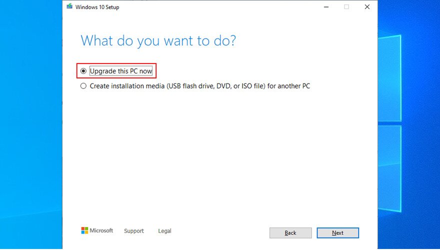 - Select Upgrade this PC now and follow the on-screen instructions