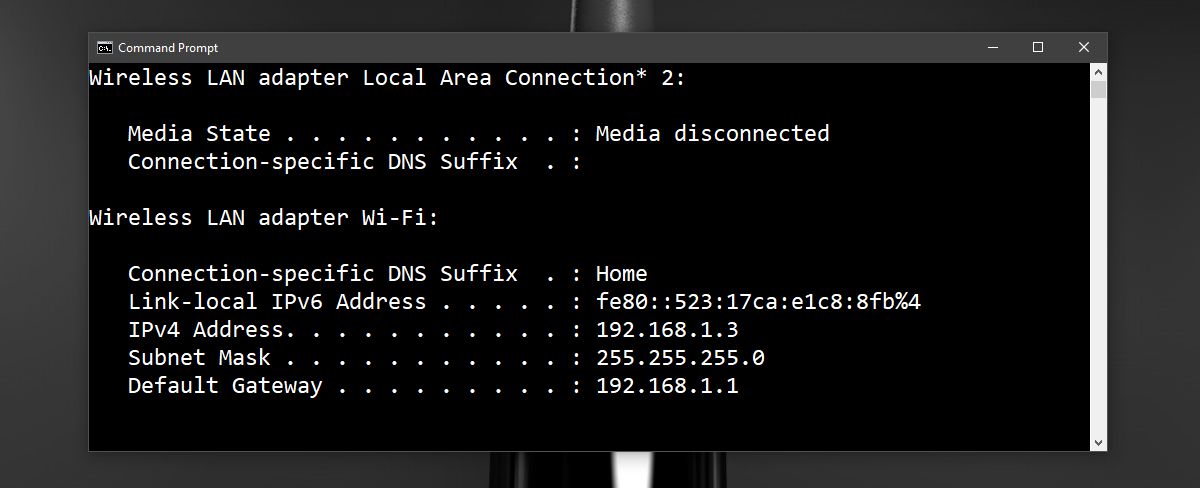 To find the private IP address of your router, open command prompt and type “ipconfig”. Under wireless adapter, wifi, or LAN, look for the Default Gateway value. This is the private IP address of your router.