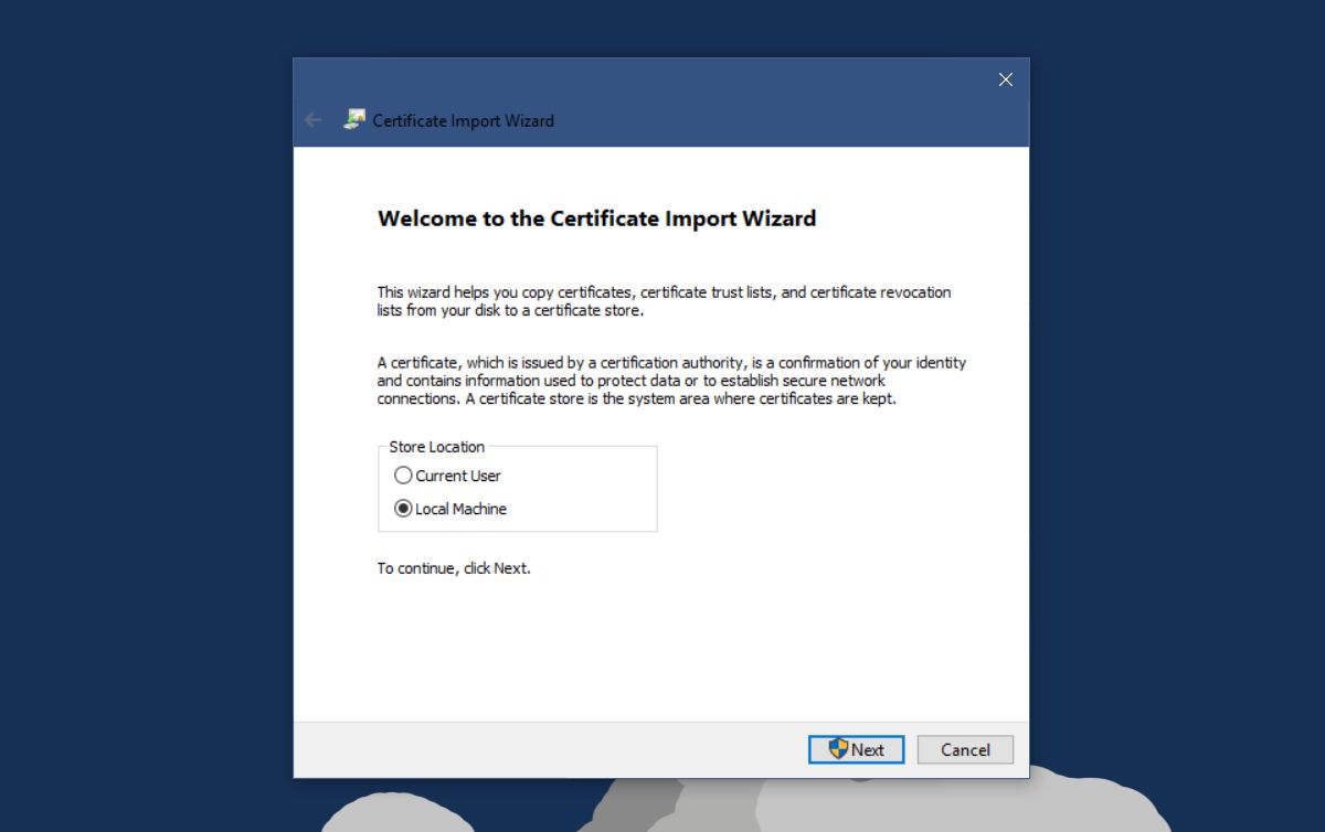 Select ‘Local Machine’ under store location. Click Next.
