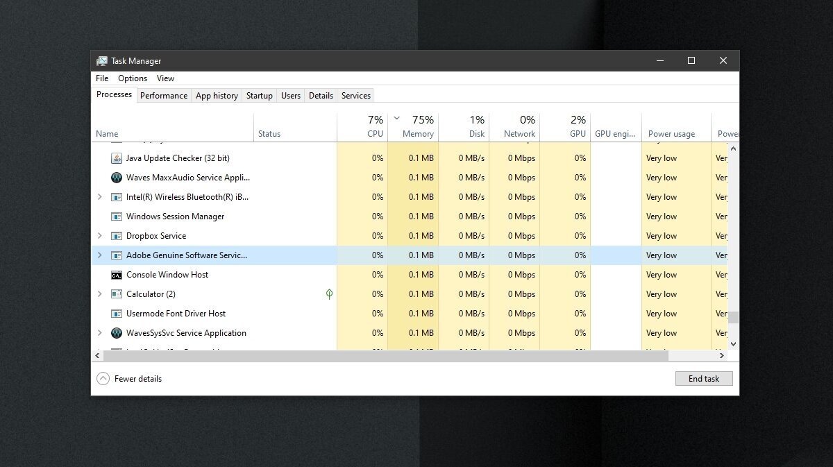 - Right-click the Adobe Genuine Integrity service in Task Manager and select End Task.